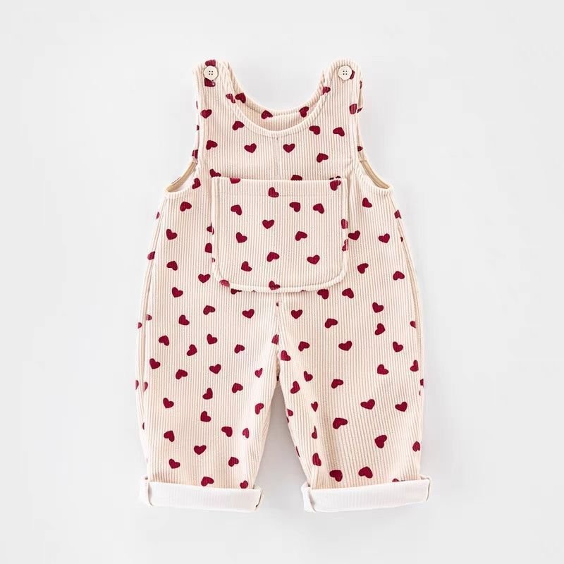 Baby Girl Ribbed Heart Print Dungaree