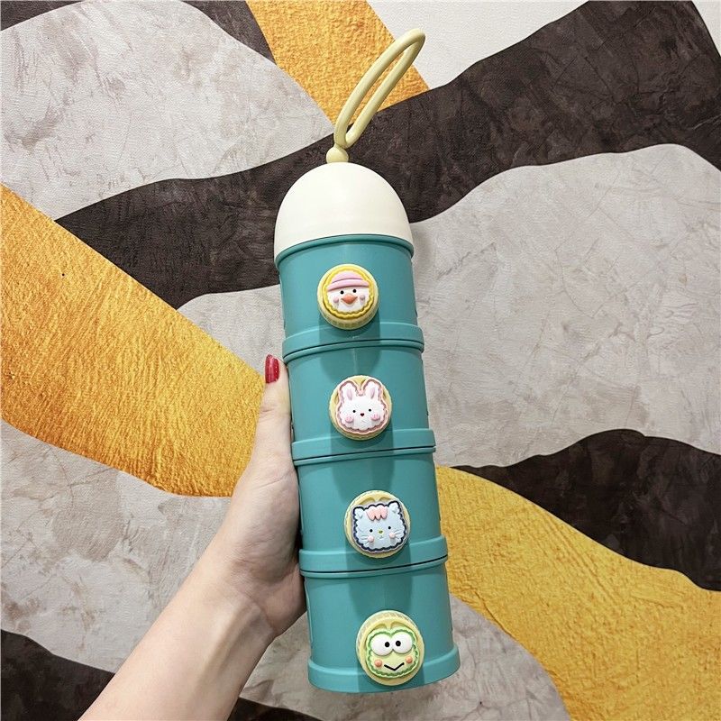 The bottle features multiple detachable compartments, allowing parents to easily clean every part and kids to enjoy a hygienic drinking experience. Each section is decorated with cute cartoon character buttons, making it visually engaging and perfect for children who love playful accessories.