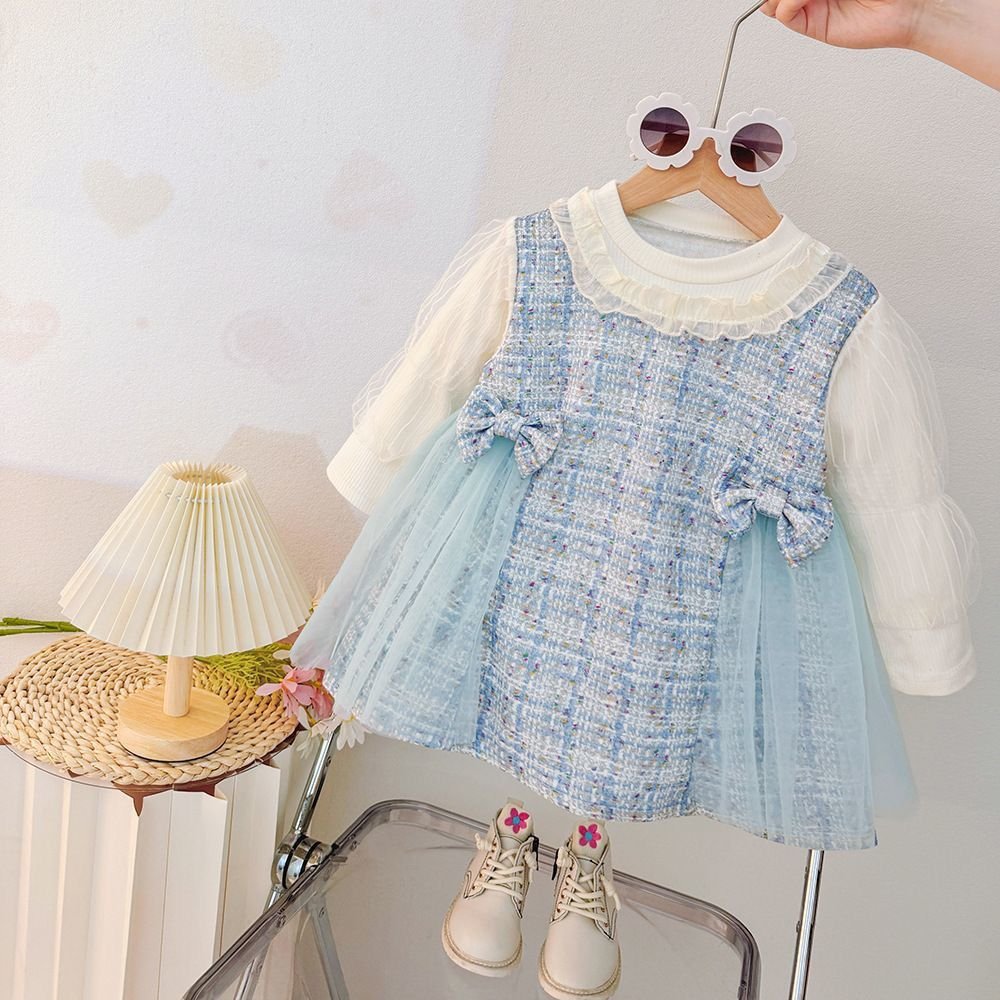 Elegant single-piece dress with a tweed-style bodice and soft tulle skirt ✨