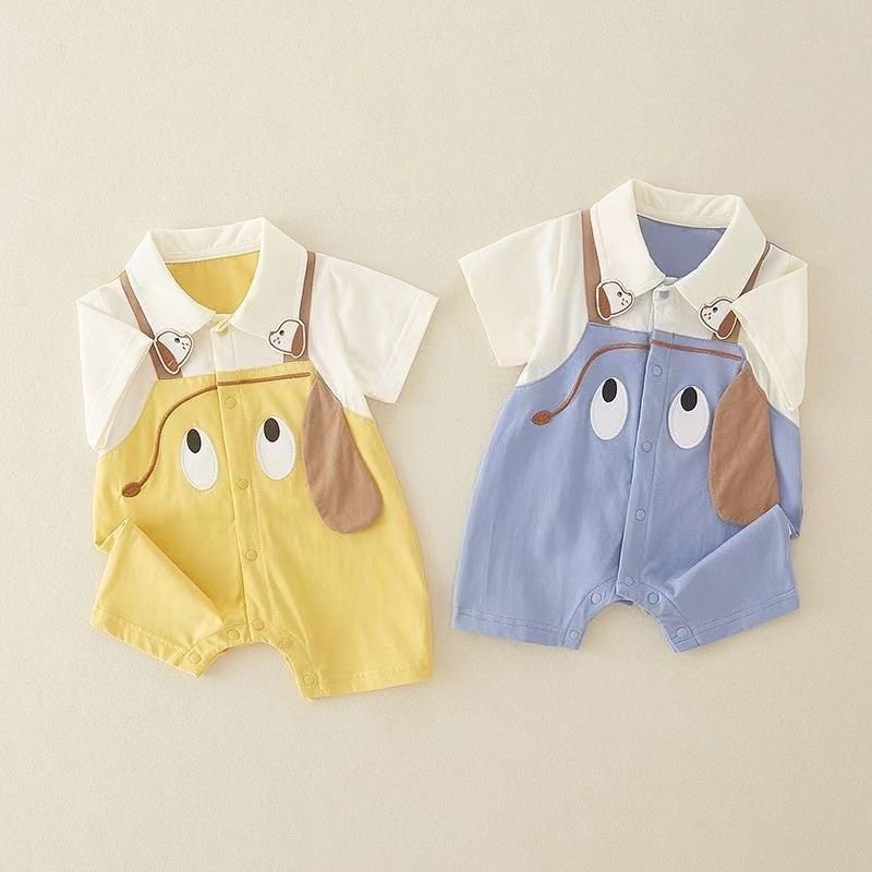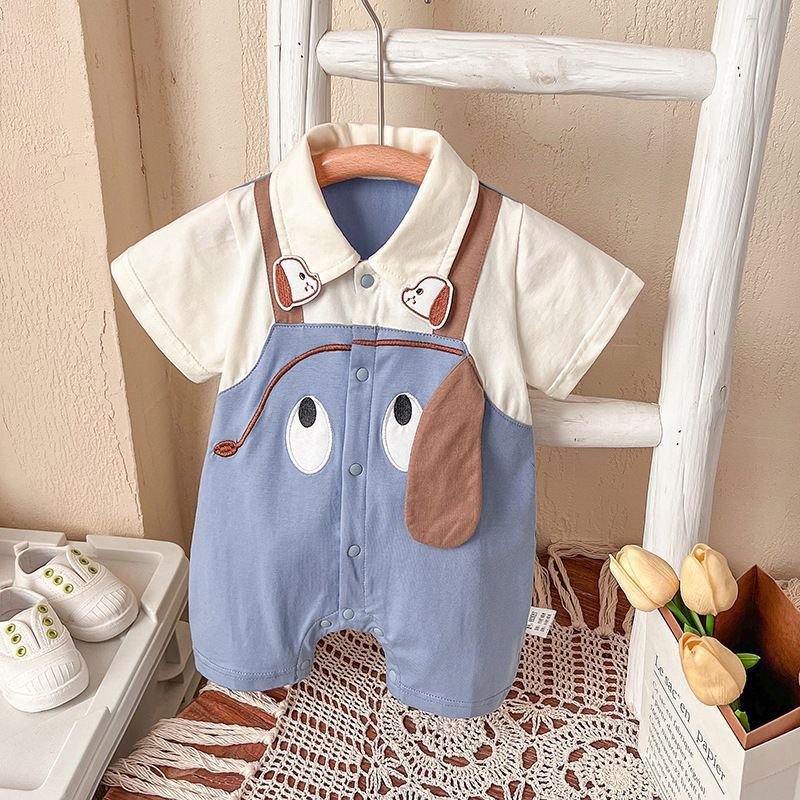 Dress your little one in playful charm with this Cute Puppy Romper – Blue Edition. Designed with an adorable puppy face print and floppy ear details, this romper features a soft blue overall-style body paired with a cream collared top for a sweet, smart look.
