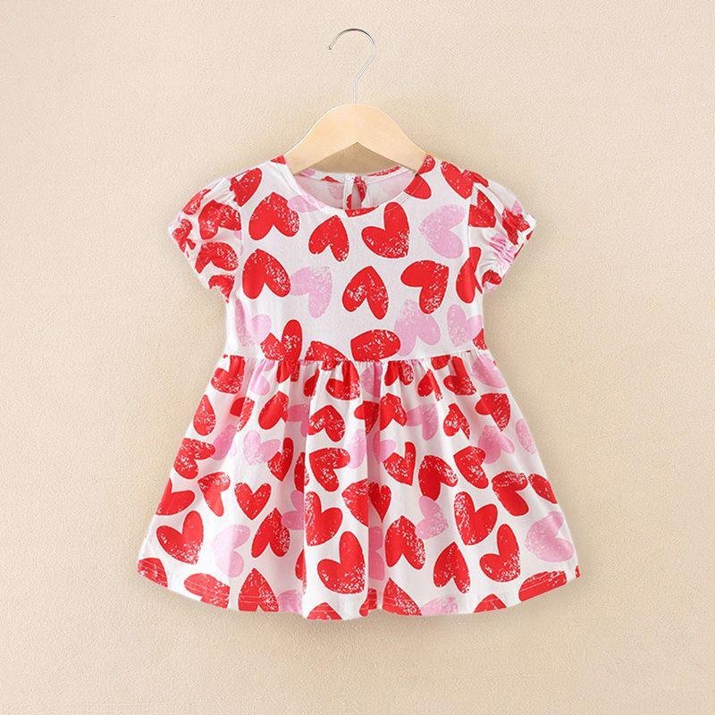 A sweet white cotton dress sprinkled all over with bright red and soft pink hearts, featuring cute cap sleeves and a gently gathered skirt for extra twirl. Light, comfy, and full of love—perfect for playdates, outings, and every little “I love you” moment.