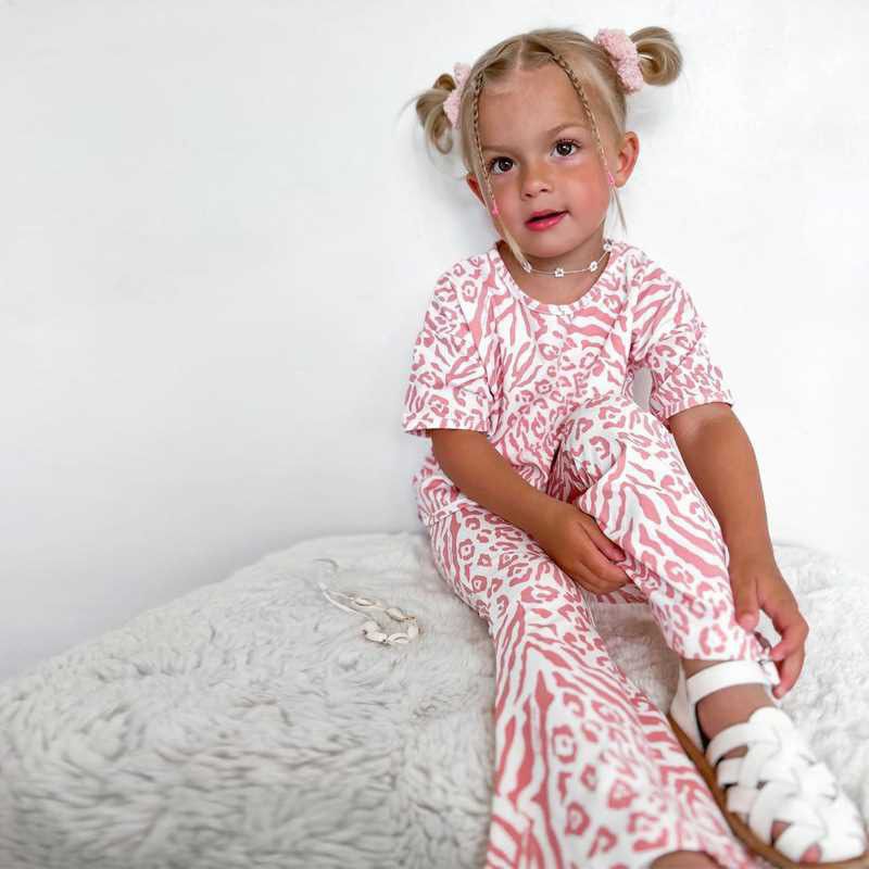 A trendy and comfy 2-piece outfit featuring a pink zebra print . Includes a relaxed short-sleeve top paired with matching straight-fit pants. Soft fabric and stylish print make it perfect for casual outings or cozy wear.