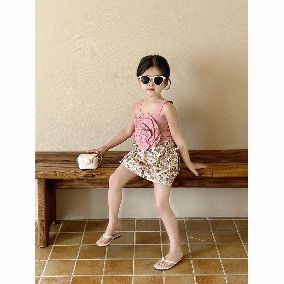 The Rosy Bloom Summer Set is a charming and stylish outfit designed for little fashionistas The sleeveless pink top features a beautiful 3D rose flower detail on the front, adding a soft and elegant touch. It is paired with a floral printed skirt that brings a fresh, playful vibe perfect for sunny days