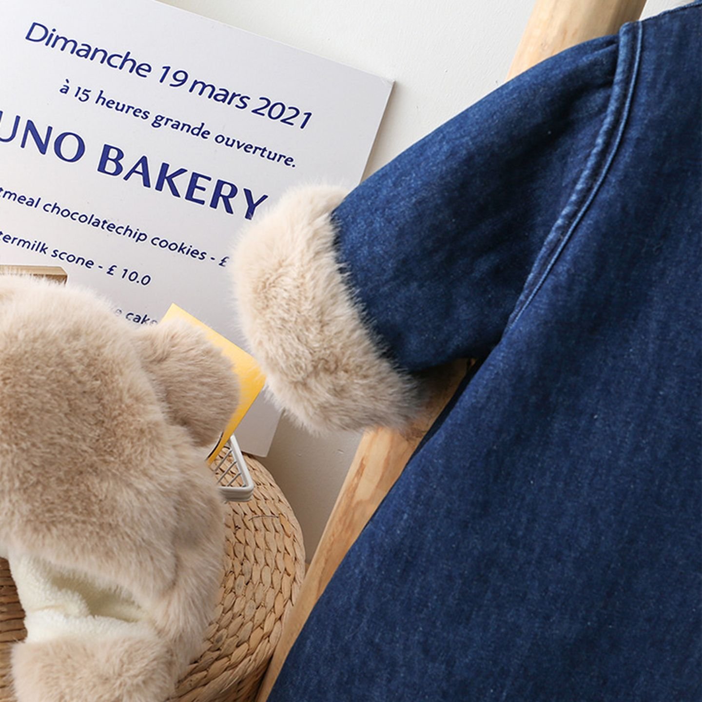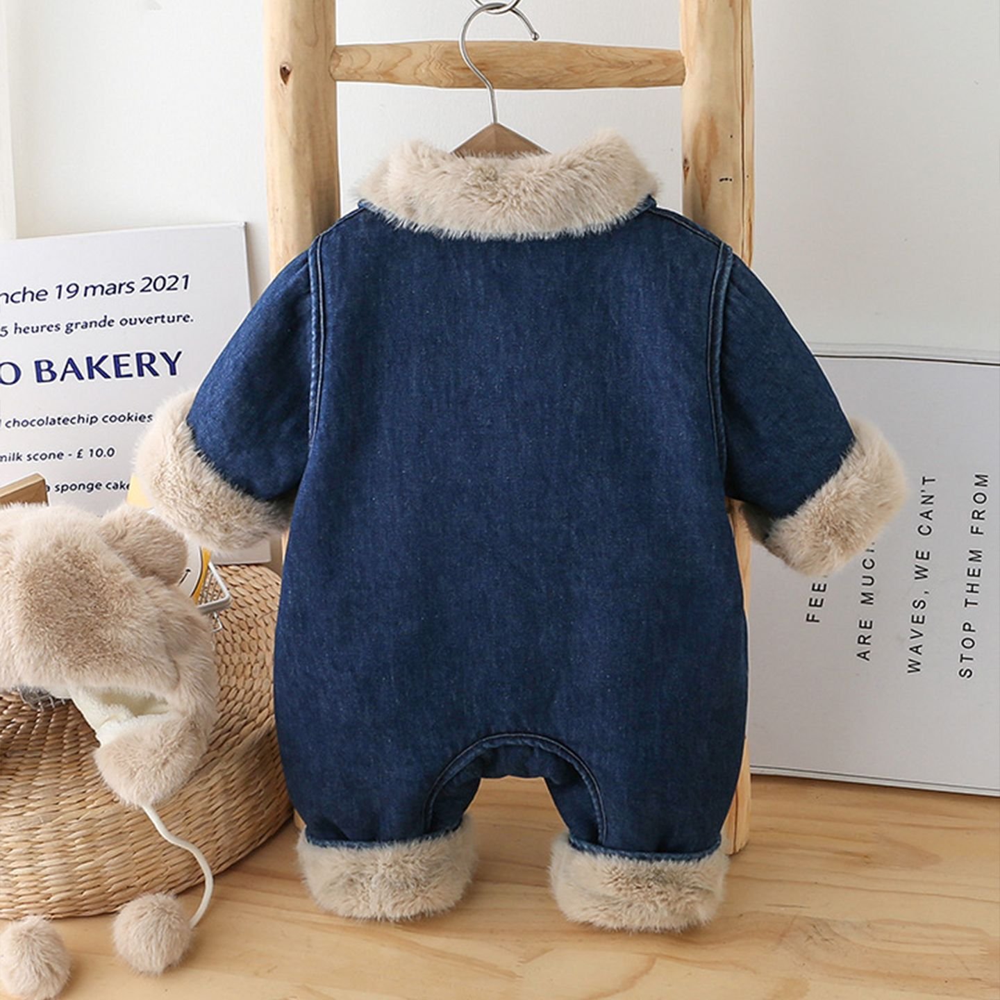 Keep your little one warm and adorable with this Baby Denim Winter Snowsuit, designed for cozy comfort in cold weather. Made from soft denim fabric with a plush faux-fur lining, this one-piece jumpsuit provides excellent warmth while remaining gentle on baby’s skin.