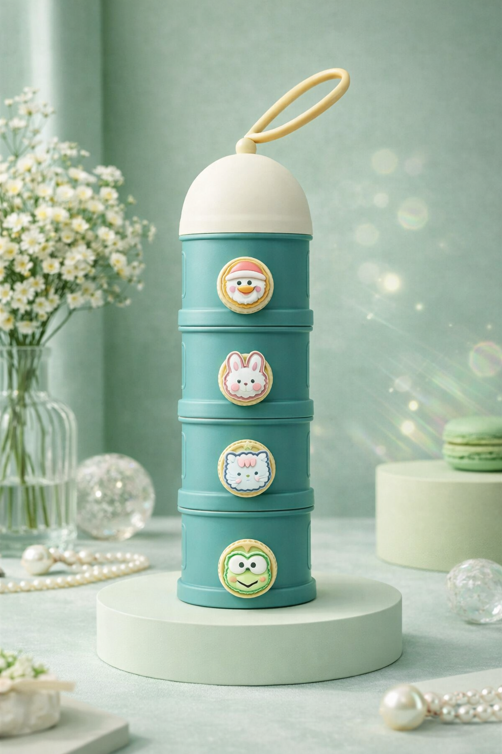 The bottle features multiple detachable compartments, allowing parents to easily clean every part and kids to enjoy a hygienic drinking experience. Each section is decorated with cute cartoon character buttons, making it visually engaging and perfect for children who love playful accessories.