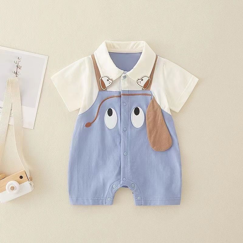Dress your little one in playful charm with this Cute Puppy Romper – Blue Edition. Designed with an adorable puppy face print and floppy ear details, this romper features a soft blue overall-style body paired with a cream collared top for a sweet, smart look.