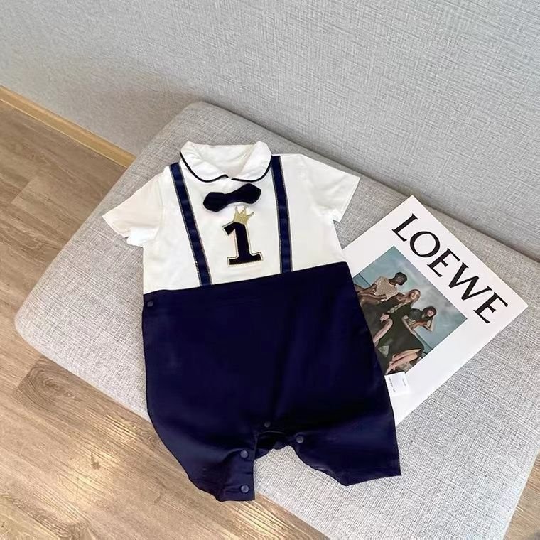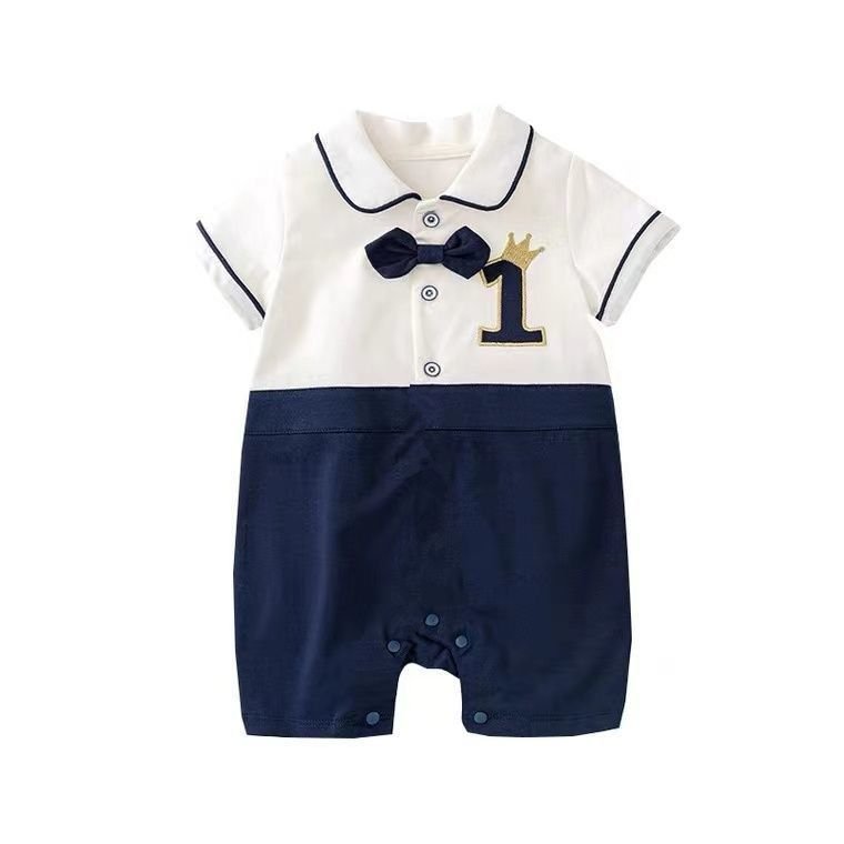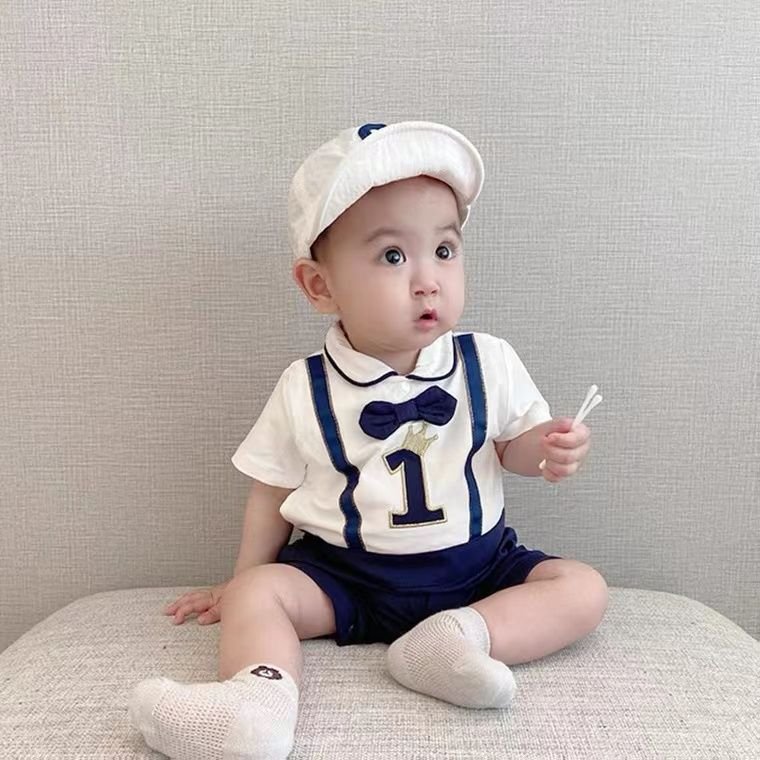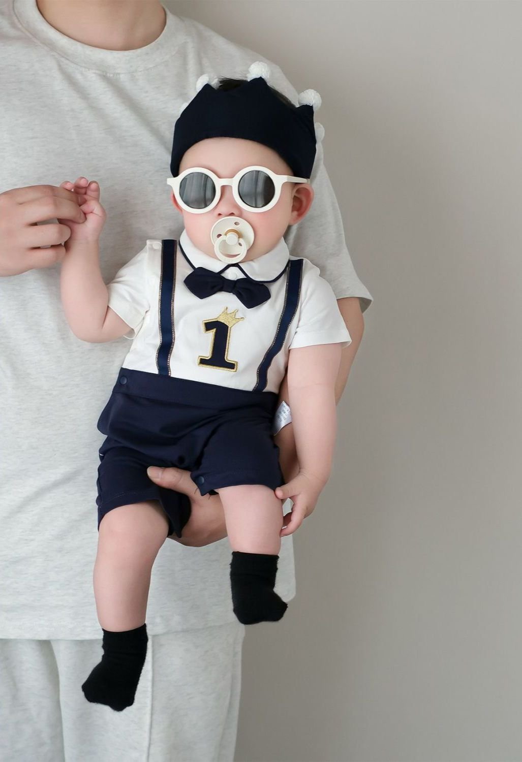 The Little Prince Number One Romper is a classy and adorable outfit perfect for special moments. Designed with a smart collared look, cute bow tie detail, and a golden crown “1” patch, this romper gives a formal yet playful style. Made from soft, baby-friendly fabric, it ensures comfort all day long. Snap buttons at the bottom make diaper changes quick and easy.