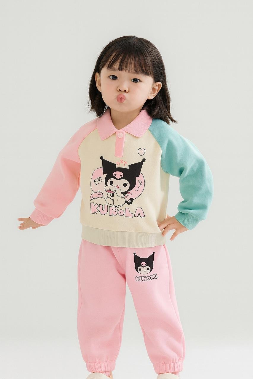An adorable, playful outfit bursting with sweet pastel charm 💗💚 This cozy two-piece set features a soft collared sweatshirt with color-block sleeves in blush pink and mint green, highlighted by a cute Kuromi cartoon print on a creamy base. The matching pink jogger pants with elastic cuffs ensure comfort and easy movement, perfect for active little days. Ideal for playtime, casual outings, or lounging in style, this set blends cuteness with everyday practicality in the most delightful way